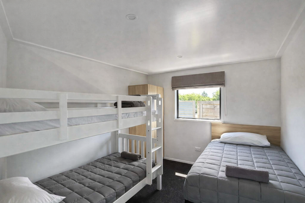 Sleeping up to five guests, they’re perfect for families, work crews, or small groups looking for modern, spacious accommodation.